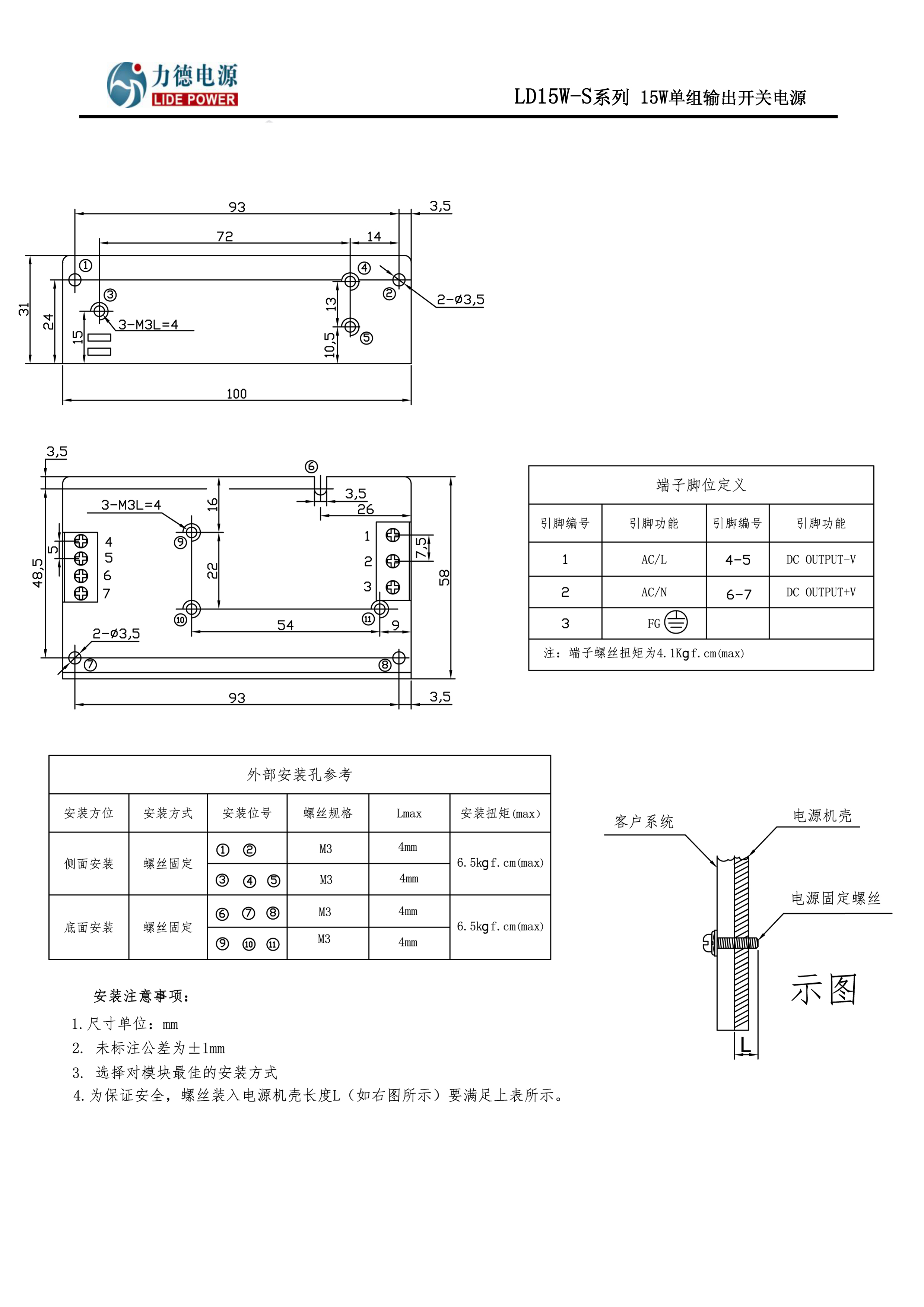 產(chǎn)品規(guī)格書下載力德15W單組輸出開關(guān)電源